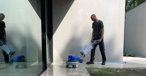 Naast de aanleg bieden we ook professionele terras- en opritreiniging aan. Hierbij gebruiken we een unieke reinigingstechniek die werkt zonder hoge druk of chemische producten – enkel met water. Zo worden algen, vuil en aanslag effectief verwijderd zonder schade aan de stenen of voegen. Je oprit of terras oogt weer als nieuw, met behoud van de originele kwaliteit en kleur.